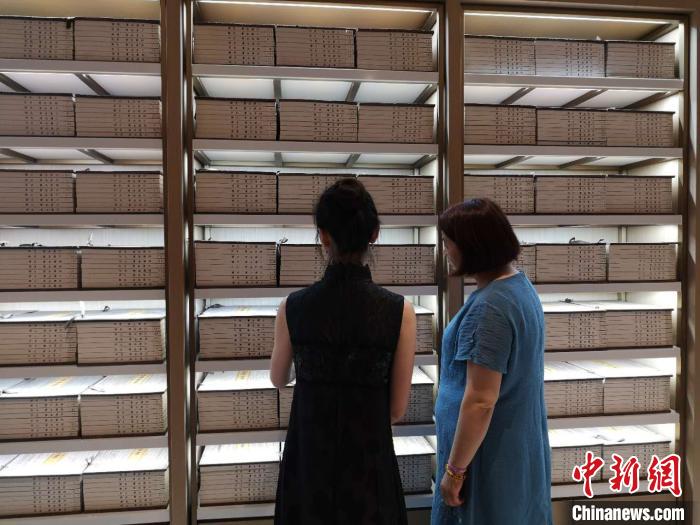 讀者站在書架前仔細(xì)觀摩線裝《四庫全書》?!⊥τ辍z