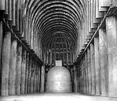 ③印度巴賈石窟12號(hào)支提窟內(nèi)景。來源:《東方建筑》