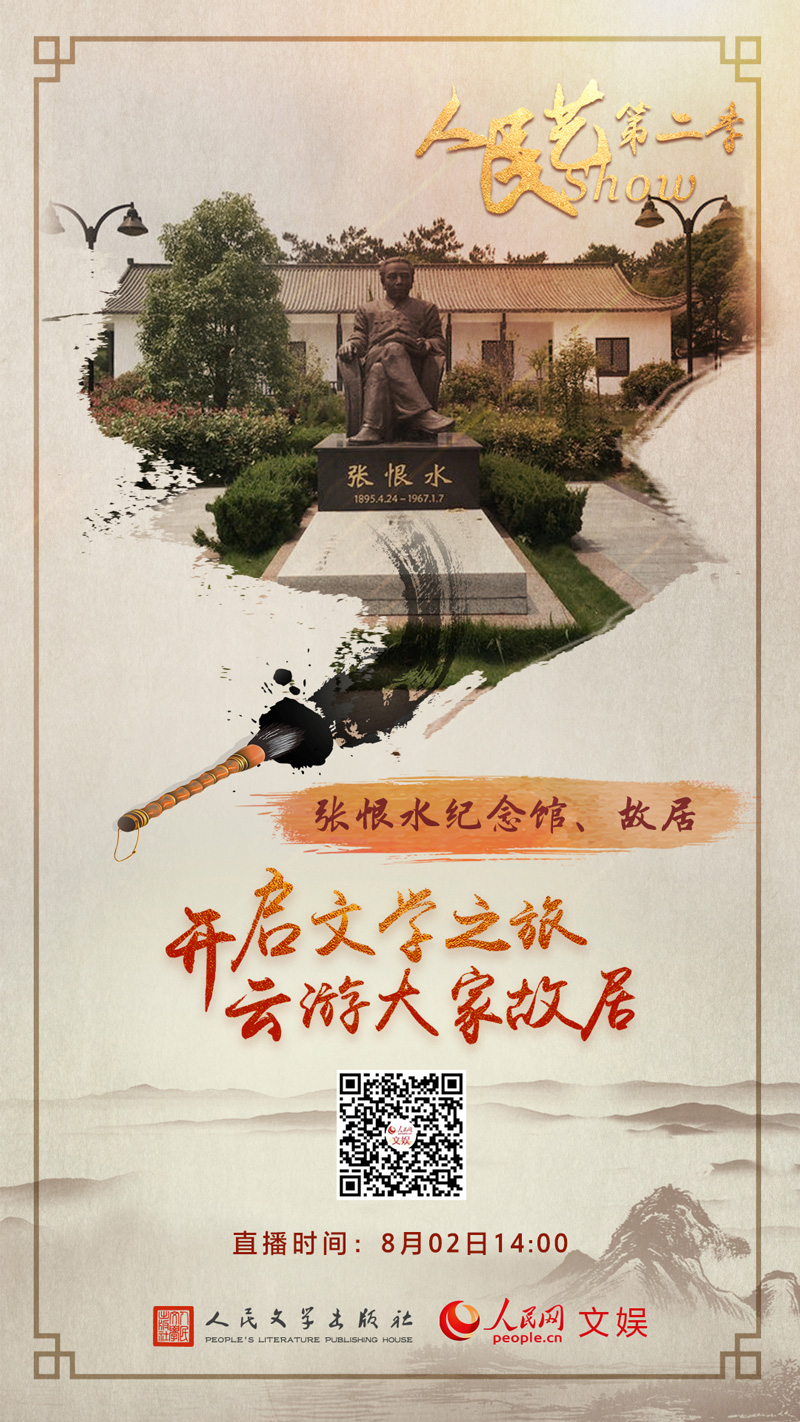 小說(shuō)《金粉世家》、《啼笑因緣》中的愛(ài)情故事,曾讓許多讀者唏噓不已、印象深刻。作家張恨水也因?yàn)檫@兩部小說(shuō)而一舉成名,被尊稱(chēng)為現(xiàn)代文學(xué)史上的“章回小說(shuō)大家”和“通俗文學(xué)大師”。8月2日14:00,人民網(wǎng)文娛部聯(lián)合人民文學(xué)出版社舉辦的“開(kāi)啟文學(xué)之旅,云游大家故居”直播活動(dòng),走進(jìn)位于安徽潛山的張恨水紀(jì)念館、故居,帶你了解張恨水的文學(xué)之路和生平故事。