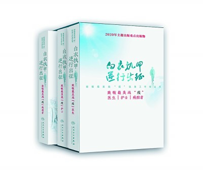 歷史不能忘卻,英雄應(yīng)該銘記。記載他們的逆行,講述他們的故事,再現(xiàn)他們的壯舉,弘揚(yáng)他們的精神,是出版界義不容辭的責(zé)任。在國(guó)家衛(wèi)生健康委員會(huì)、中宣部出版局及社會(huì)各界的大力支持和幫助下,人民衛(wèi)生出版社“白衣執(zhí)甲 逆行出征——致敬最美戰(zhàn)‘疫’醫(yī)務(wù)工作者”叢書,于2020年8月19日中國(guó)醫(yī)師節(jié)前夕出版了。這套叢書,內(nèi)容從數(shù)千篇全國(guó)一線戰(zhàn)“疫”醫(yī)務(wù)工作者征文中精選輯錄而成。依書寫人的身份不同,分為《致敬最美戰(zhàn)“疫”醫(yī)生》《致敬最美戰(zhàn)“疫”護(hù)士》《致敬最美戰(zhàn)“疫”疾控者》三個(gè)分冊(cè),共收錄300余篇文章。