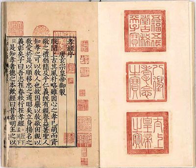 韋力說:“當(dāng)年天祿琳瑯有很特殊的規(guī)定,比如它所藏書的封皮都要用五色織錦和黃綾裝裱,同時鈐上乾隆的五方玉璽。但那時宮里沒有專門的裝幀人,所以有一種說法,宮中太監(jiān)把書拿到琉璃廠找修書匠,請他們按照要求統(tǒng)一修補(bǔ)。一來二去,修書的和太監(jiān)便商量著調(diào)包了。他們?yōu)槭裁锤疫@么干?因?yàn)榛实鄹緵]有時間看書,那些書放了好多年,根本沒動過。”