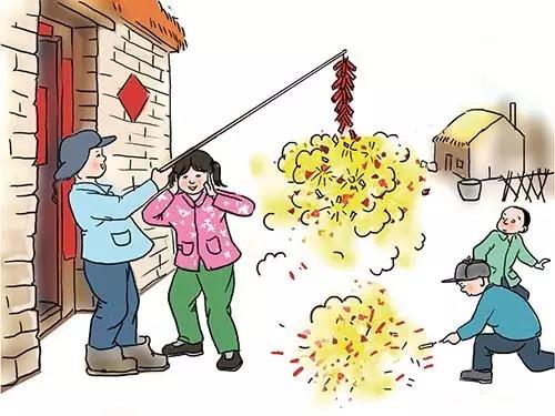 除夕更闌人不睡,厭禳鈍滯迫新歲。漸漸長大,媽媽常常打發(fā)我和妹妹去村里的大商店買些火柴、食鹽、紙張和肥皂等物品。商店里擺著瀏陽鞭炮,100響的一副0.5元,200響的1元。囊中羞澀,可望不可及,悄悄咽下羨慕的涎水。后來,每逢過年,媽媽有時(shí)多給幾元錢,讓我買些鞭炮、“大炮”(威力大的單個(gè)炮仗)、“兩響炮”和“冒花炮”。于是,除夕夜里,我就時(shí)不時(shí)到院子里燃放炮仗,有時(shí)把三四個(gè)鞭炮的引線纏在一起燃放,算是“連環(huán)炮”。