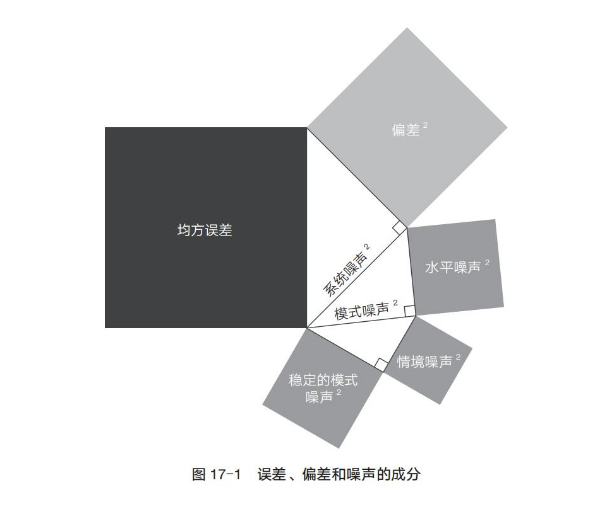雖然我們很想謹慎一點,盡量避免基于有限的案例做出過度性概括。然而,整合我們研究后發(fā)現(xiàn),穩(wěn)定的模式噪聲實際上比系統(tǒng)噪聲的其他成分都更為重要。由于我們很少在同一研究中全面地探究誤差的各個組成部分,因此需要進行精確的分析才能得出這樣一個暫時性的結(jié)論。簡而言之,以下就是我們所知道的和所不知道的。(摘自第17章 噪聲源:偏差是引人注目的圖形,而噪聲是不受我們關(guān)注的背景)