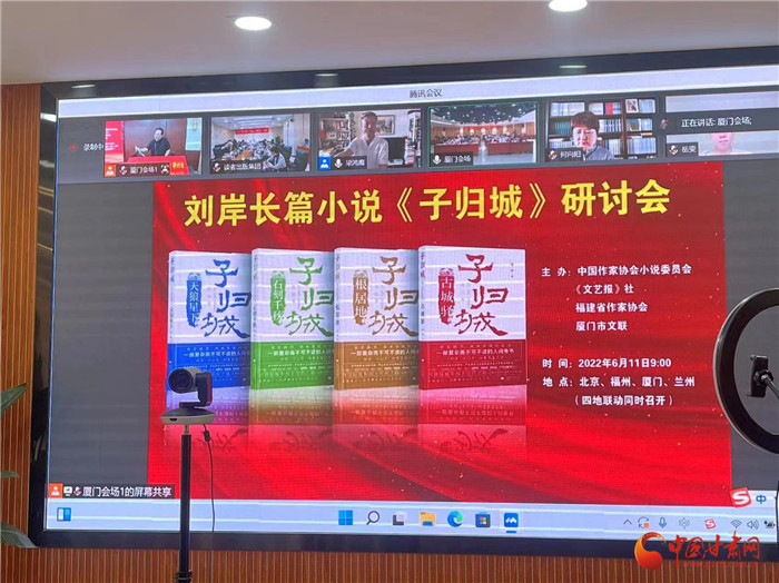 中國甘肅網6月12日訊 (本網記者 張?zhí)m琴)作為敦煌文藝出版社目前出版的“重量級”圖書,劉岸長篇小說《子歸城》受到國內各領域關注和好評。6月11上午,劉岸長篇小說《子歸城》研討會在北京、福州、蘭州、廈門四地,以線上線下聯(lián)動的方式舉行。