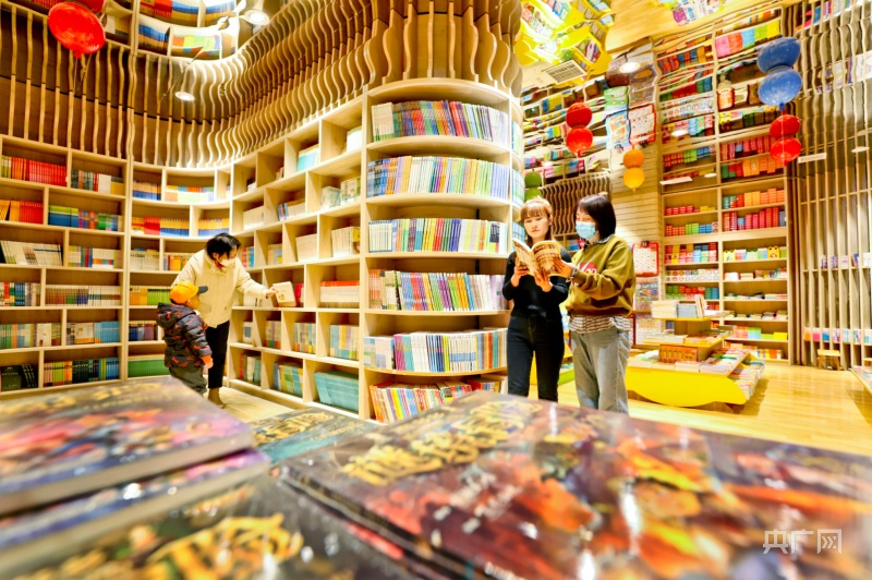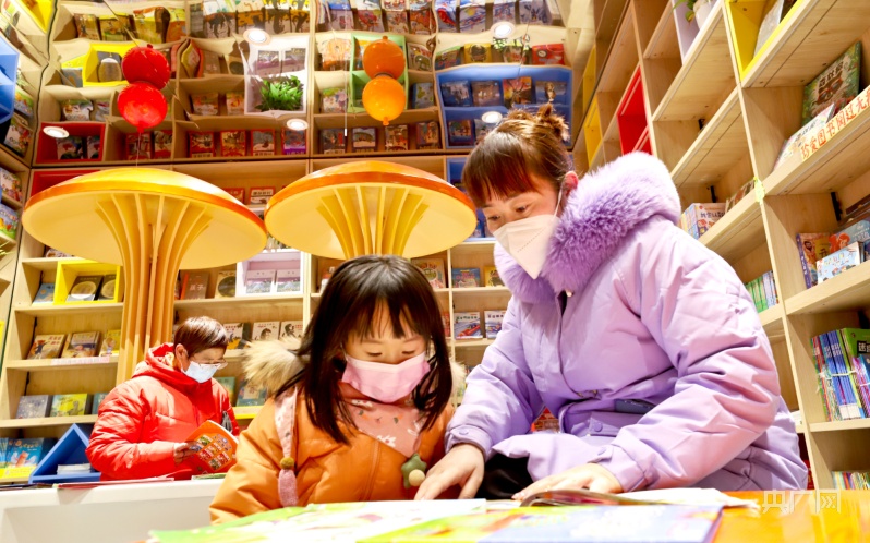 1月23日,市民帶著孩子在甘肅張掖錦華書城讀書、選書、購書。(央廣網(wǎng)發(fā) 王將 攝)
