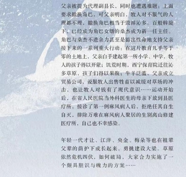 《雪山大地》將青藏高原幾十年來發(fā)生的改天換地,以及以“父親母親”為代表的三代建設(shè)者在這片土地上耕耘建設(shè)的日日夜夜,展現(xiàn)在讀者面前。人與自然、人與動(dòng)物、生態(tài)與發(fā)展的主題貫穿始終,全景式地展現(xiàn)了藏族牧民傳統(tǒng)社會(huì)形態(tài)和生活樣貌的變遷。