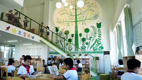 在保證館藏圖書品質(zhì)和數(shù)量基礎(chǔ)上做好閱讀軟硬件輔助和服務(wù)。與少先隊(duì)、團(tuán)委、學(xué)生會(huì)合作,組建圖書管理員志愿者服務(wù)隊(duì),開(kāi)展創(chuàng)建讀書文化暨圖書閱讀與交流的線上線下活動(dòng),舉辦讀書沙龍、讀書節(jié)、故事會(huì)、經(jīng)典誦讀比賽等,讓圖書館成為實(shí)現(xiàn)閱讀目標(biāo)的最佳場(chǎng)域。