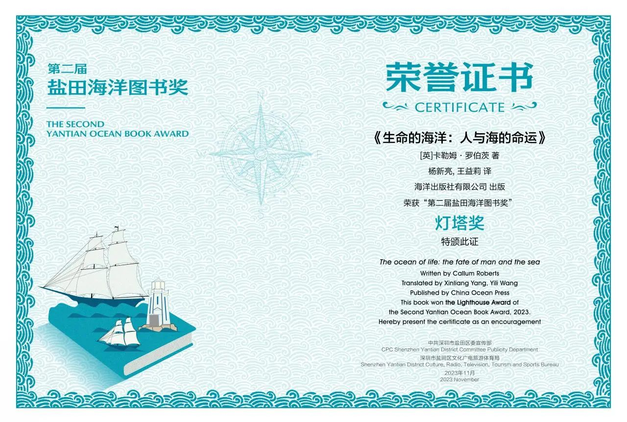 海洋出版社有限公司出版的《生命的海洋:人與海的命運(yùn)》 于2023年11月獲第二屆“鹽田海洋圖書獎(jiǎng)”燈塔獎(jiǎng)。