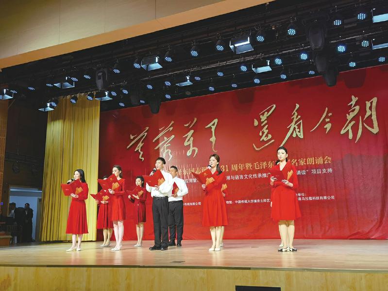 朗誦會(huì)上,中國傳媒大學(xué)學(xué)生誦讀毛澤東同志詞作《沁園春·長(zhǎng)沙》。 本報(bào)記者 章紅雨 攝