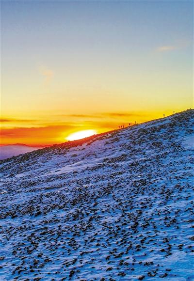 元旦當(dāng)日早上6時(shí)30分,記者乘坐景交車前往巴爾斯圣山核心景區(qū)觀看日出,在抵達(dá)海拔3900米后徒步上山迎接2020年第一縷陽光??邕^及膝的雪,踏過堅(jiān)硬的碎石堆,溜過光滑的冰面,抵達(dá)了海拔4100米最佳觀賞日出點(diǎn),等待著新年第一縷陽光刺破蒼穹、越過遠(yuǎn)處的雪山之巔照耀大地。7時(shí)50分左右,陽光沖破云層,遠(yuǎn)處的雪山像是被鑲了一道金邊,此時(shí)只覺心靈與大山融為了一體,只有靜靜地等待。不知不覺中,陽光逐漸刺眼起來,這才意識(shí)到2020年第一抹陽光,承載著令人希冀的美好愿望已來到我們身旁。 蘭州晨報(bào)/掌上蘭州記者 黃芃