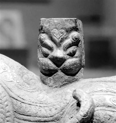 不僅造型夸張,在雕塑的外形紋飾上也用各種線圈、各種線條,突出表現(xiàn)了猛獸的兇猛強(qiáng)悍,給人一種望而生畏的感覺。