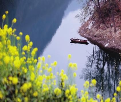 近日,讓水河迎來(lái)一年中最美的季節(jié)。逶迤的青山、彎曲的河道,被大片大片盛開(kāi)的油菜花渲染成一幅春光畫卷。澄碧的江水倒映著近水的村莊和連綿的群山,金黃的油菜花、潔白的櫻桃花、粉紅的桃花相互輝映,偶爾一條小船劃入河中,蕩起層層漣漪……