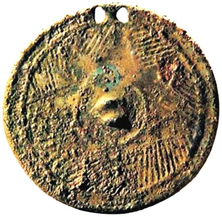 1976年青海省貴南縣尕馬臺出土的齊家文化七角星紋銅鏡,是目前我國最早的幾面銅鏡之一。