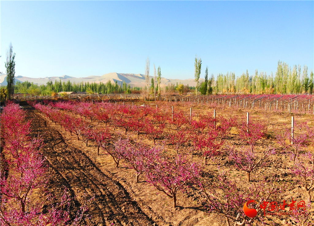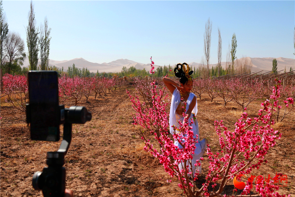 3   甘肅敦煌:鳴沙山下桃花朵朵開(kāi)(圖)