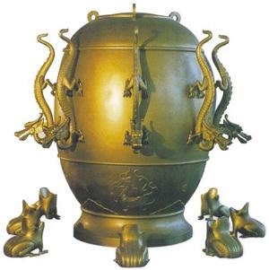 從此,張衡在天文學和星象體系方面的聰明才智如噴發(fā)的涌泉一發(fā)不可收:候風儀、指南針、記里程鼓車、會飛的木雕等等,一個個科學發(fā)明成果相繼推出,并在公元132年研制出了地動儀。地動儀是世界上最早的觀測地震的儀器,它比歐洲創(chuàng)造類似的地動儀早1700多年。