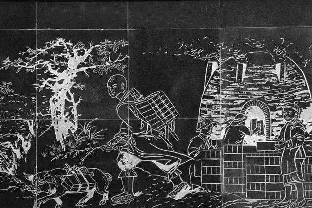 風顛修寺的傳說線雕。記者 劉小雷 攝