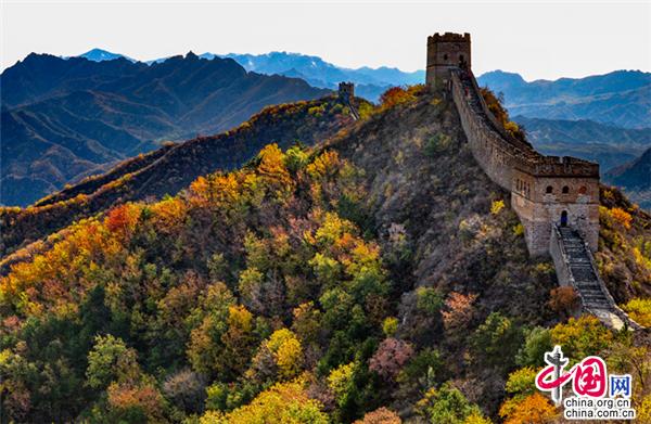 金山嶺長(zhǎng)城四季分明,秋季飛黃流丹,層林盡染。