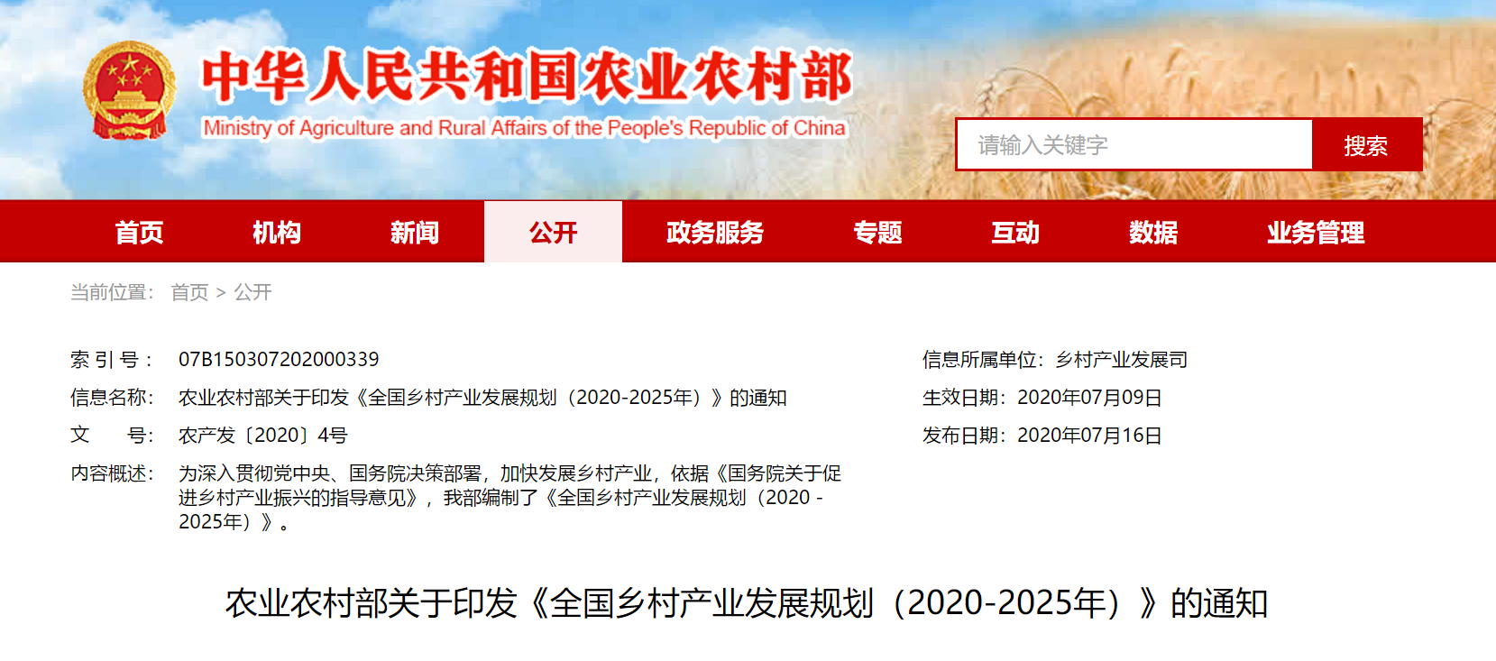 去年7月9日,農(nóng)村農(nóng)業(yè)部正式下發(fā)《全國鄉(xiāng)村產(chǎn)業(yè)發(fā)展規(guī)劃(2020-2025年)》(以下簡稱《規(guī)劃》?!兑?guī)劃》稱,近年來,農(nóng)村創(chuàng)新創(chuàng)業(yè)環(huán)境不斷改善,新產(chǎn)業(yè)新業(yè)態(tài)大量涌現(xiàn),鄉(xiāng)村產(chǎn)業(yè)發(fā)展取得了積極成效。但存在產(chǎn)業(yè)鏈條較短、融合層次較淺、要素活力不足等問題,亟待加強(qiáng)引導(dǎo)、加快發(fā)展。根據(jù)《國務(wù)院關(guān)于促進(jìn)鄉(xiāng)村產(chǎn)業(yè)振興的指導(dǎo)意見》要求,為加快發(fā)展以二三產(chǎn)業(yè)為重點(diǎn)的鄉(xiāng)村產(chǎn)業(yè),制定本規(guī)劃。
