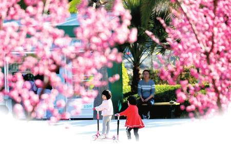 開學前夕,孩子們在柳綠花明、青草萌芽的市區(qū)濱江濕地公園里擁抱春色,告別寒假。映襯著孩子們活潑的身影,玉蘭、紫葉李、杏花、櫻花盡情綻放,到處一派春意盎然,透著勃勃生機。記者 冉創(chuàng)昌 攝影報道
