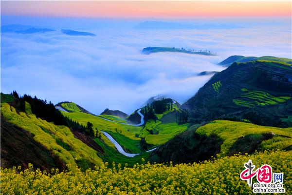 云南省羅平縣無(wú)處不風(fēng)景。春季的馬街,桃花、梨花、李花、山茶花、油菜花、杜鵑花、馬纓花把一座座山峰映襯得如詩(shī)如畫。佇立牛頭山俯視云層,漫無(wú)邊際的白云在山麓翻滾、碰撞、擁擠,雖沒有海的蔚藍(lán)與呼嘯之態(tài),卻有海的浩瀚與壯闊。站在山巔呼吸沁人心脾的清新空氣,聽山風(fēng)掠過林梢的聲音,云霧升騰時(shí)如夢(mèng)如幻,仿佛有仙人騰云駕霧下凡而來(lái)。
