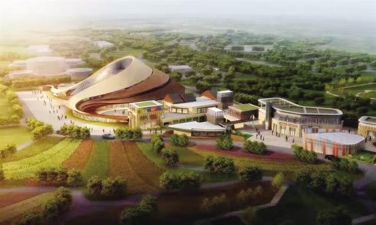 位于步行區(qū)核心位置的蝴蝶形狀的大樓是園區(qū)的研學(xué)生態(tài)科普館,它由原有的綠博館改造而成,用于研學(xué)旅游團隊的開發(fā)和各類科普宣傳及展覽。