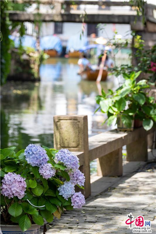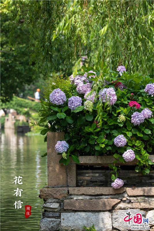 花團錦簇一詞大約是為繡球量身定制,微風(fēng)一曳,波光親吻一曳。藍(lán)紫開遍,彌漫的淡淡花香讓春天的信使忍不住沉溺其中,周莊的浪漫大抵關(guān)乎世間一切。