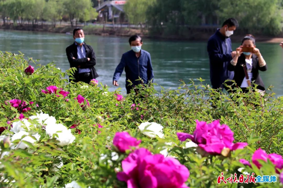 芳菲四月,臨夏各地觀賞性花卉陸續(xù)進入盛花期。4月24日,在永靖縣城南濱河路,數(shù)千株牡丹競相綻放,紫的、白的、紅的……婀娜多姿的各色牡丹花香四溢,吸引了大批游客前來觀花賞景。