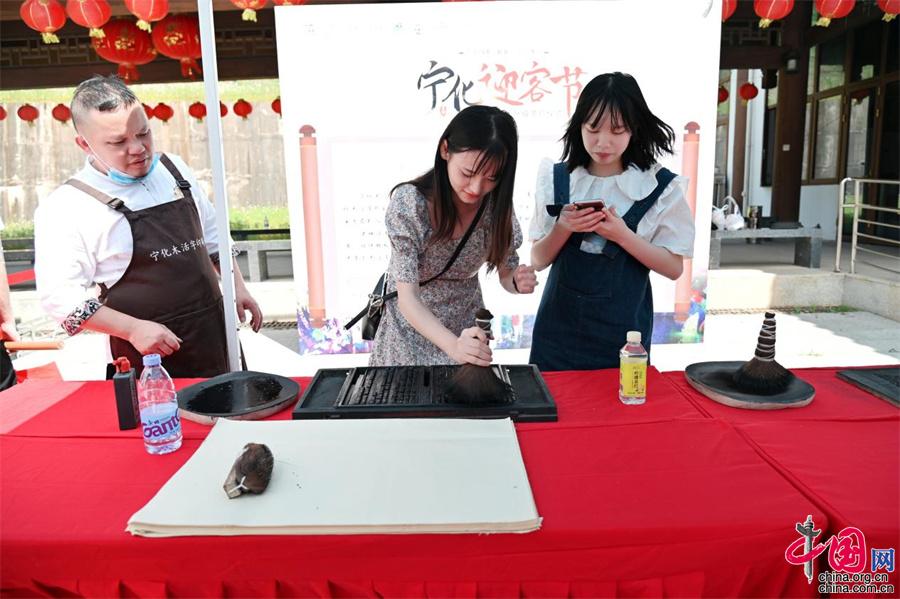 古色古香的蛟湖黃慎文化園,原為清代著名畫家,揚(yáng)州八怪之一的黃慎所建。他在這里讀書作畫,其詩(shī)集《蛟湖詩(shī)鈔》流傳至今?;顒?dòng)現(xiàn)場(chǎng),游客們一邊欣賞文化園的古色印記,一邊品鑒名人書畫展,遍覽寧化四色資源。(陳祥臨)