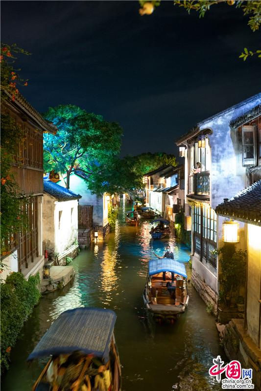 宋朝時(shí)候,宵禁解除,每至深夜,燈火通明。如今周莊的夜色,亦是在光影中沉醉,水影搖曳間,畫船枕眠。這里,可以陽春白雪,不食煙火;也可以徹夜不歇,最懂人間。這場周莊的溫柔夢(mèng),將一直編織下去……澤國溫柔的清風(fēng),夜間可愛的彎月,若能與你共賞,那便再無遺憾。歌里唱,不懼怕,天涯路長,甘為你,披滿身風(fēng)霜,請(qǐng)君,入夢(mèng)。(尤紫璇 周宣)