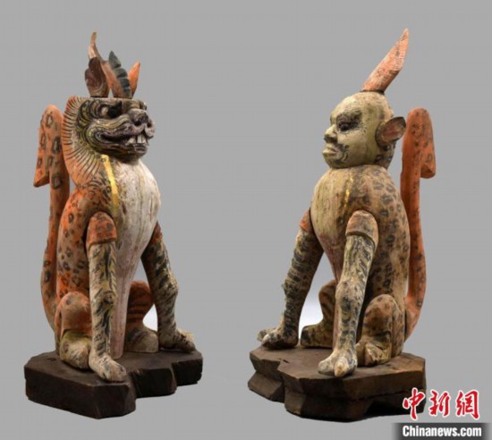 圖為唐代吐谷渾王族墓葬群慕容智墓出土鎮(zhèn)墓獸。(資料圖) 甘肅省文物局供圖