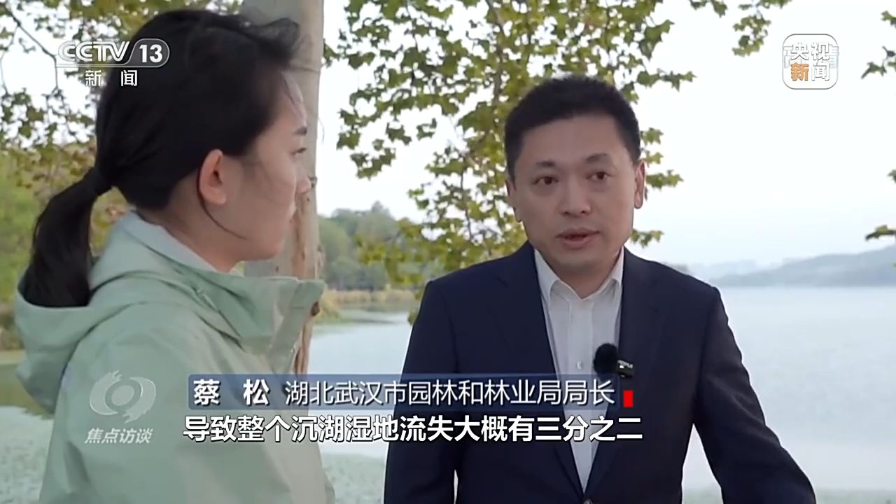 湖北武漢市園林和林業(yè)局局長(zhǎng) 蔡松:圍湖造田、養(yǎng)魚,導(dǎo)致整個(gè)沉湖濕地流失大概有三分之二,比較嚴(yán)重。從2013年開(kāi)始,武漢市加大對(duì)沉湖濕地的整治力度,通過(guò)生態(tài)補(bǔ)償?shù)姆绞剑麄€(gè)退漁還濕達(dá)到了7.8萬(wàn)畝。