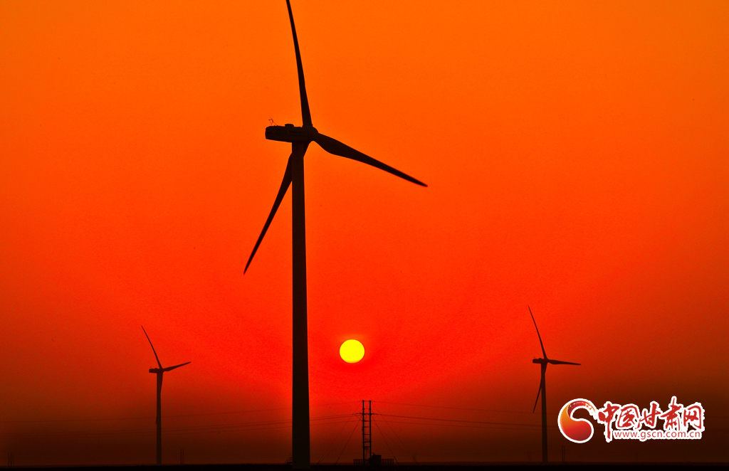 11月17日,甘肅省張掖市甘州區(qū)平山湖蒙古族鄉(xiāng)的草原上,龍源電力甘肅平山湖風電場66臺風電機組高高聳立,碩大的風輪迎風不息,與晚霞相映成景。