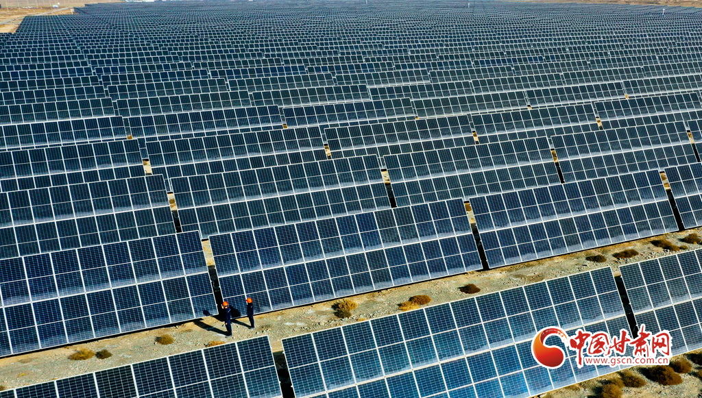 11月17日,甘肅省張掖市甘州區(qū)南灘龍源光伏發(fā)電場,綠色能源正源源不斷地輸入電網(wǎng)。
