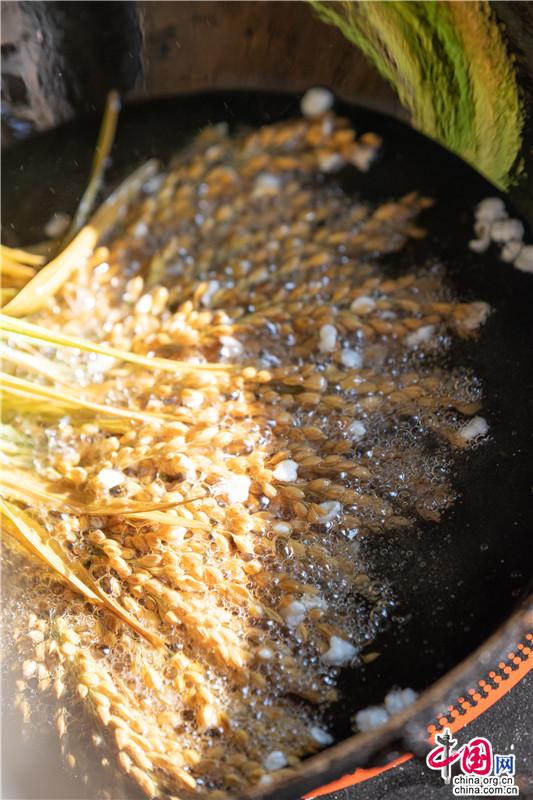 還可以試試在院子里炸“爆米花”,煤爐子,油鍋?zhàn)?,稻穗就在鍋里?lè)開(kāi)了花,“噼里啪啦”一首交響?,F(xiàn)炸的稻米,香個(gè)透底。