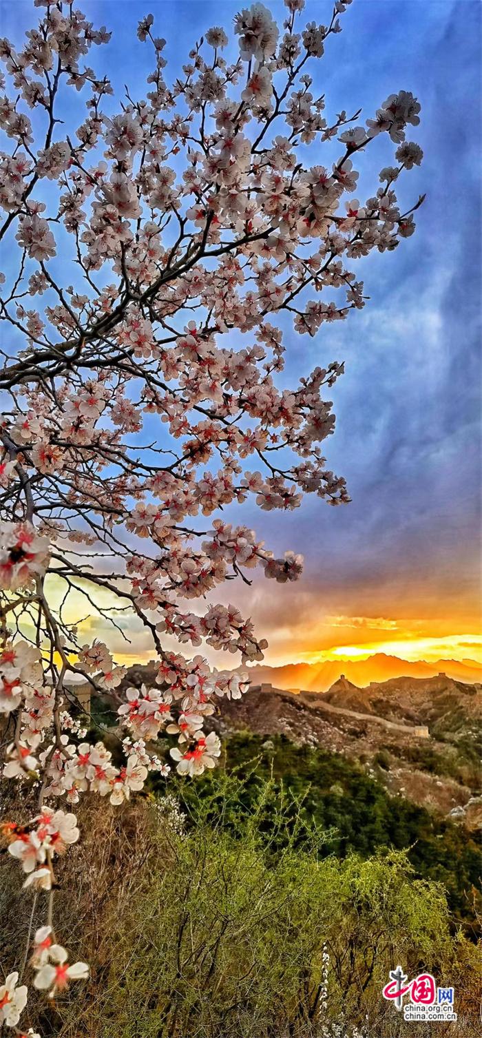 資料圖:當長城遇上杏花。 張愛東 攝  圖片和作品內容無關