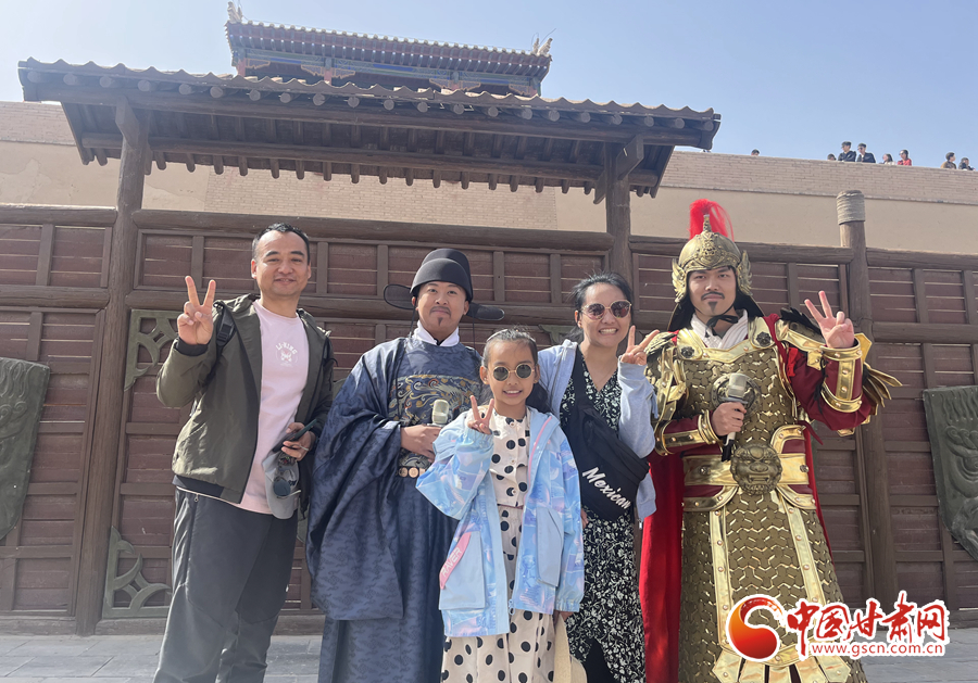 中國甘肅網(wǎng)5月3日訊(通訊員 陳楚)“開城,迎賓。”5月1日上午,在嘉峪關(guān)關(guān)城景區(qū),隨著號(hào)角聲響起,兩名門衛(wèi)士兵緩緩打開城門,來自全國各地的游客,隨著守門將軍的步伐,誓師出征,游客們置身歷史氛圍,仿佛回到古時(shí)的大漠邊關(guān)。