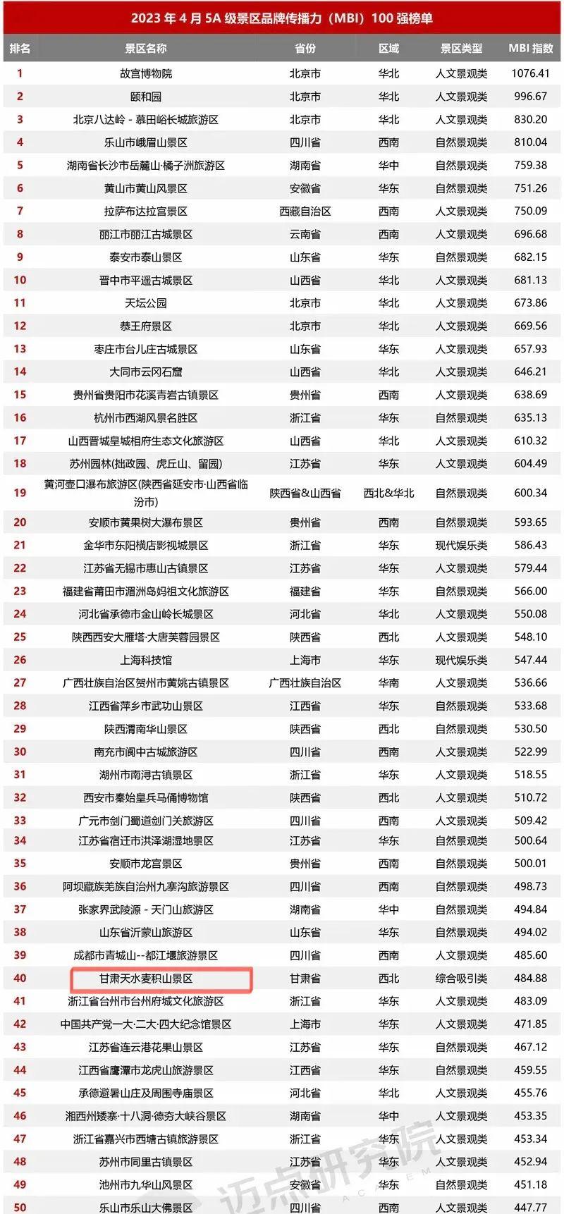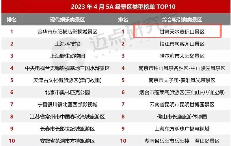 最新5A級景區(qū)百強(qiáng)出爐!麥積山大景區(qū)上榜!