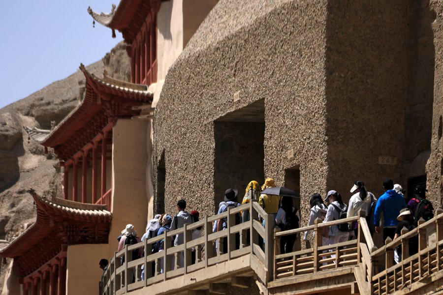 夏日時節(jié),眾多游客走進絲路敦煌,欣賞石窟藝術,觀看經(jīng)典演藝,感受敦煌文化。