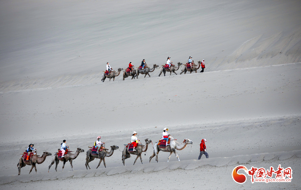 眼下正值甘肅省敦煌市旅游旺季,鳴沙山月牙泉景區(qū)持續(xù)吸引游客前來參觀游覽,這些駱駝每天更忙碌也更規(guī)律——早晨六點多“上班”,輪流休息,傍晚七點多“下班”。蜿蜒的駝隊在駝道上馱著游客在沙漠中漫步,成為鳴沙山月牙泉景區(qū)一道優(yōu)美的風景線。