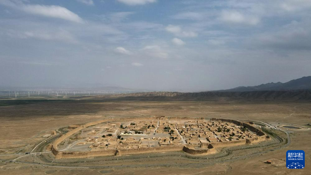 這是位于甘肅省白銀市景泰縣寺灘鄉(xiāng)的永泰古城。永泰古城始建于明萬歷年間,為當(dāng)時的軍事要塞,因形似金龜,又名“永泰龜城”。古城城圍周長1.7公里,高12米,2006年被命名為全國重點(diǎn)文物保護(hù)單位(7月11日攝,無人機(jī)照片)。新華社記者 方欣 攝