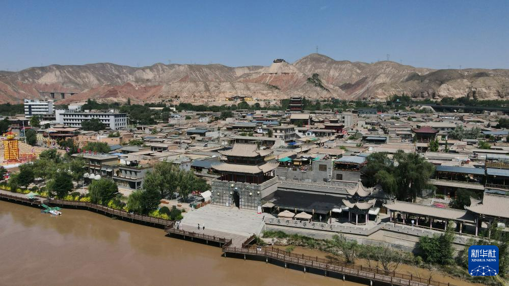 這是位于甘肅省蘭州市西固區(qū)黃河北岸的河口古鎮(zhèn)。河口古鎮(zhèn)歷史悠久、文化底蘊(yùn)深厚,現(xiàn)留存商賈碼頭、戰(zhàn)略要塞、交通樞紐等遺跡(7月9日攝,無人機(jī)照片)。新華社記者 張可任 攝