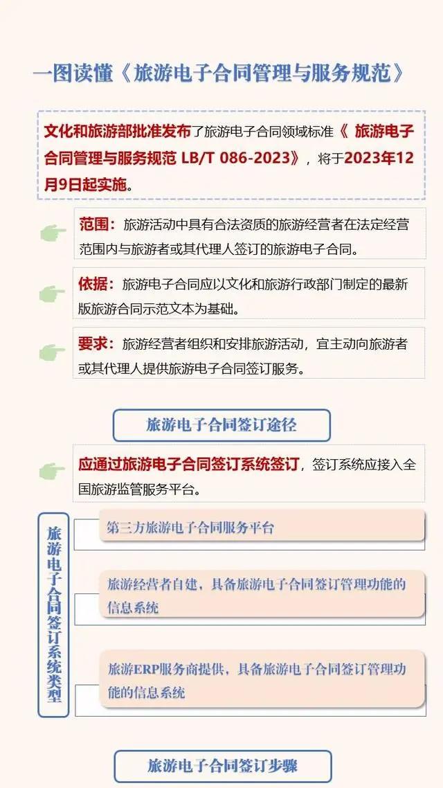 日前,文化和旅游部批準發(fā)布了旅游電子合同領(lǐng)域的行業(yè)標準《旅游電子合同管理與服務(wù)規(guī)范》(以下簡稱“標準”),將于2023年12月9日起實施。文化和旅游部正式發(fā)布該規(guī)范的解讀。