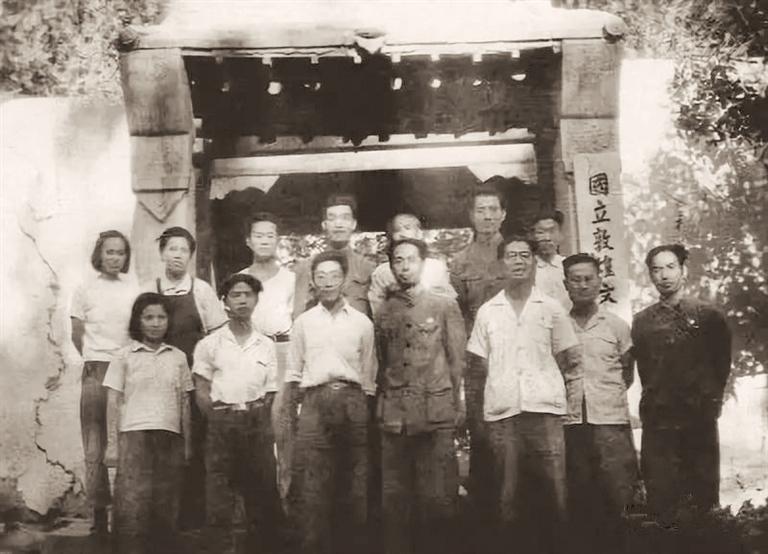 有一件事情在趙季平腦海里久久縈繞,難以忘懷。當(dāng)年,趙季平的父親、著名畫家趙望云曾有兩次不平凡的敦煌之行,但時(shí)隔多年,隨著時(shí)間的推移,他多次尋找父親敦煌之行的資料都未能如愿。這次在敦煌采風(fēng),趙季平又托朋友多方打聽,希望能幫助他尋找到那段難以釋懷的歷史。原敦煌市政協(xié)副主席高德祥先生多方努力,幾經(jīng)周折,終于在敦煌研究院的歷史檔案中發(fā)現(xiàn)了唯一一張照片:是趙望云代表人民政府接收國(guó)立敦煌藝術(shù)研究所時(shí),與張明坦、常書鴻、段文杰、李承仙、范文藻、孫儒僴等人在研究所大門前的合影。高德祥囑托好友韓蘭魁先生將照片帶給了趙季平。