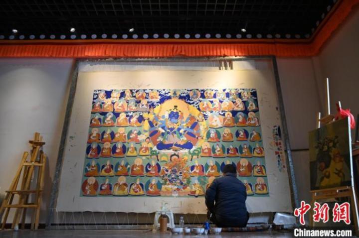 距離唐卡小鎮(zhèn)數(shù)十米遠(yuǎn)的精品唐卡展廳,擺滿了甘南藏族唐卡國家級代表性傳承人交巴加布與父親二人的作品。交巴加布接受中新社記者采訪時講述,國際游人對唐卡尤其感興趣,他們參觀完拉卜楞寺,通常會詢問打聽,一路尋至展廳繼續(xù)欣賞唐卡。有時,他還會現(xiàn)場演繹畫唐卡,滿足游客的好奇心。