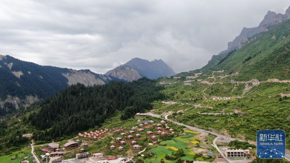 ↑ 這是6月27日拍攝的扎尕那一處帳篷營(yíng)地民宿(無(wú)人機(jī)照片)。新華社記者 陳斌 攝