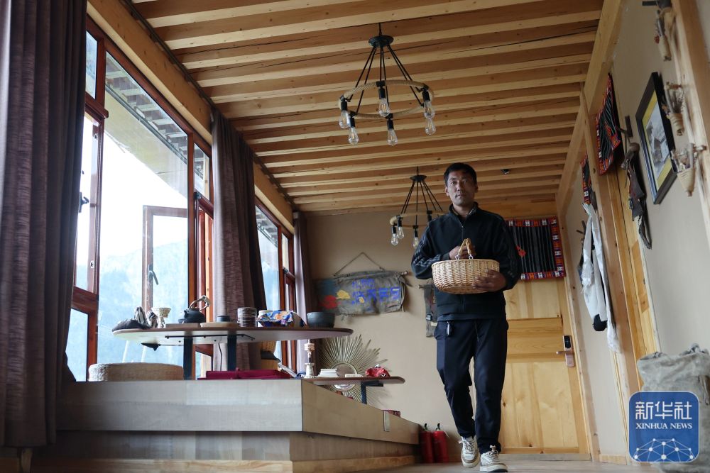 ↑ 工作人員在迭部縣旺藏鎮(zhèn)次日那村的一家民宿里打掃衛(wèi)生(6月28日攝)。新華社記者 方欣 攝