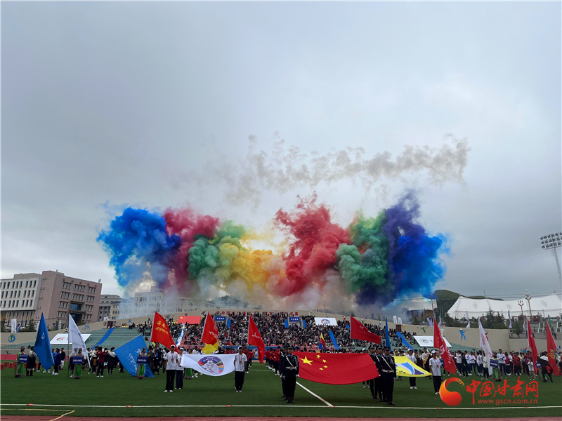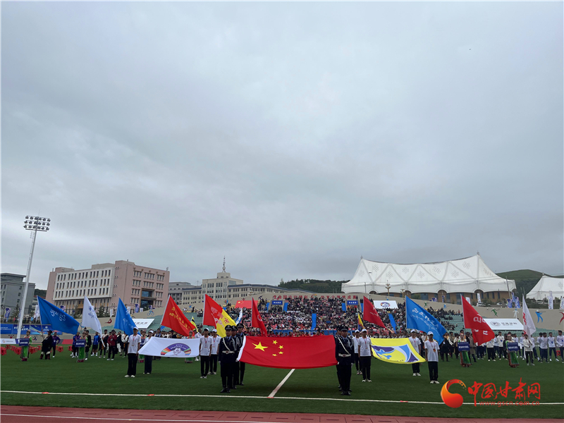 隨后,會旗方隊緊隨其后,此次足球邀請賽的會徽由象征團結(jié)與融合的九色環(huán)形縮影與象征美好期許的扎尕那山體相擁環(huán)抱而組成,設計的核心意義是致力于多元文化交融與共同進步,推動高原足球奮力前行創(chuàng)造美好未來。