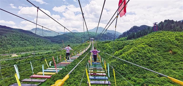 “太刺激了!太好玩了!下次約上朋友還來這里!”在法臺山風(fēng)景區(qū)出口,外地游客王英笑著說,“真沒想到這里還有這么棒的一個打卡地。”距離蘭州市區(qū)不遠(yuǎn)的法臺山風(fēng)景區(qū),憑借優(yōu)美的自然風(fēng)光、清新的空氣、濃厚的民族風(fēng)情和眾多的游樂項目,吸引眾多游客前來體驗游玩。這個占地1260余畝的田園綜合體綠化面積達(dá)80%,目前已建成高空漂流、5D玻璃吊橋、遠(yuǎn)古印象、神秘喊泉、七彩滑道、高空秋千、極限滑草、高空滑索等20多個游樂設(shè)施,還經(jīng)常性開展體育拓展訓(xùn)練、水上娛樂、花兒藝術(shù)表演、民族歌舞、篝火晚會、四季有機農(nóng)產(chǎn)品采摘等豐富多彩的活動,深受游客和孩子們的青睞。