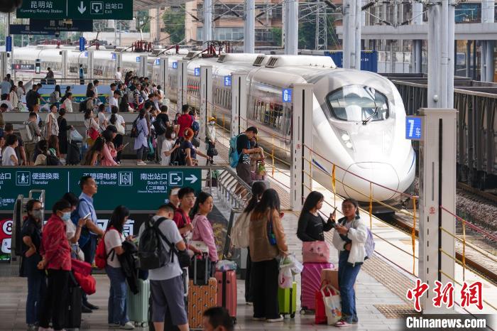 8月31日,云南昆明,列車抵達昆明站。當日,為期62天的中國鐵路暑運結束。中新社記者 劉冉陽 攝