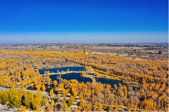 原標題:寶藏甘肅|碧云天黃葉地 在金塔胡楊林領略絕美秋色